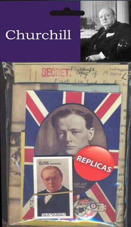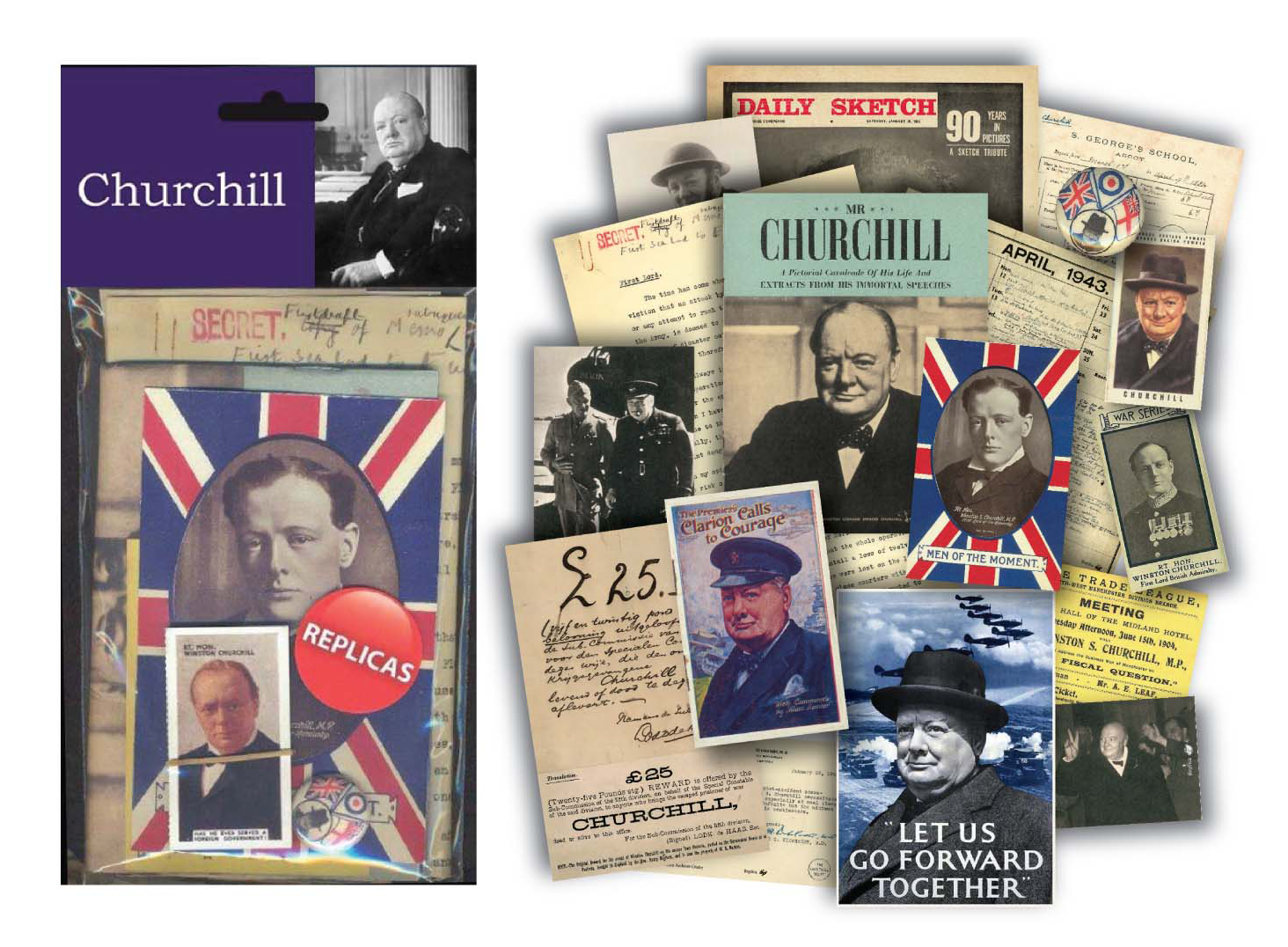 Our Churchill Memorabilia Pack is a collection of high quality reproduced paper memorabilia relating to Winston Churchill. It makes an excellent educational aid for a new generation and can be used to invoke memories in an older one. It is packaged in a clear bag with header card.