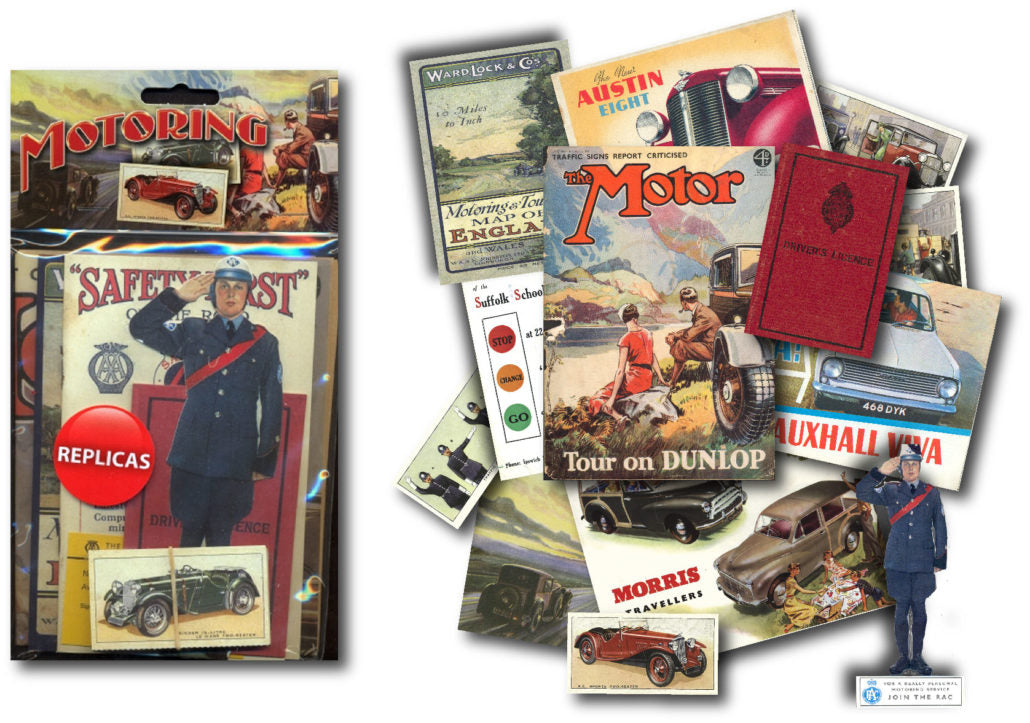The motoring memorabilia pack really recreates the motoring experience for Britons in the first half of the Twentieth century, with quality paper and card reproductions.