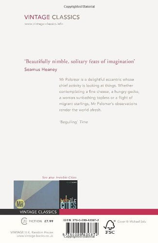 Mr Palomar is a delightful eccentric whose chief activity is looking at things. He is seeking knowledge; 'it is only after you have come to know the surface of things that you can venture to seek what is underneath'. Whether contemplating a fine cheese, a hungry gecko, a woman sunbathing topless or a flight of migrant starlings, Mr Palomar's observations render the world afresh.