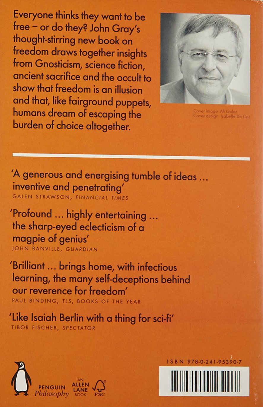 Everyone thinks they want to be free - or do they? John Gray's thought-stirring new book on freedom draws together insights from Gnosticism, science fiction, ancient sacrifice and the occult to show that freedom is an illusion and that, like fairground puppets, humans dream of escaping the burden of choice altogether.