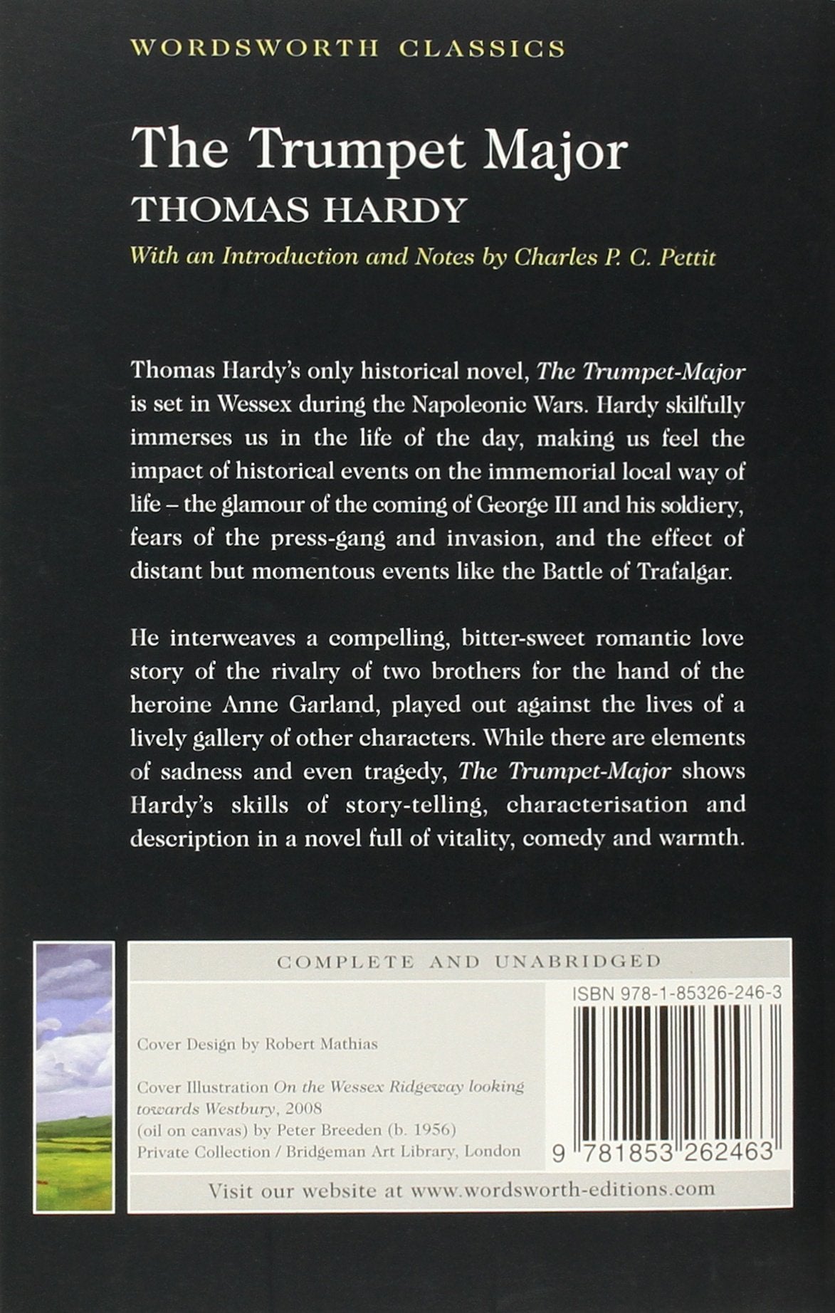 Thomas Hardy's only historical novel, The Trumpet Major is set in Wessex during the Napoleonic Wars. Hardy skilfully immerses us in the life of the day, making us feel the impact of historical events on the immemorial local way of life - the glamour of the coming of George III and his soldiery, fears of the press-gang and invasion, and the effect of distant but momentous events like the Battle of Trafalgar.