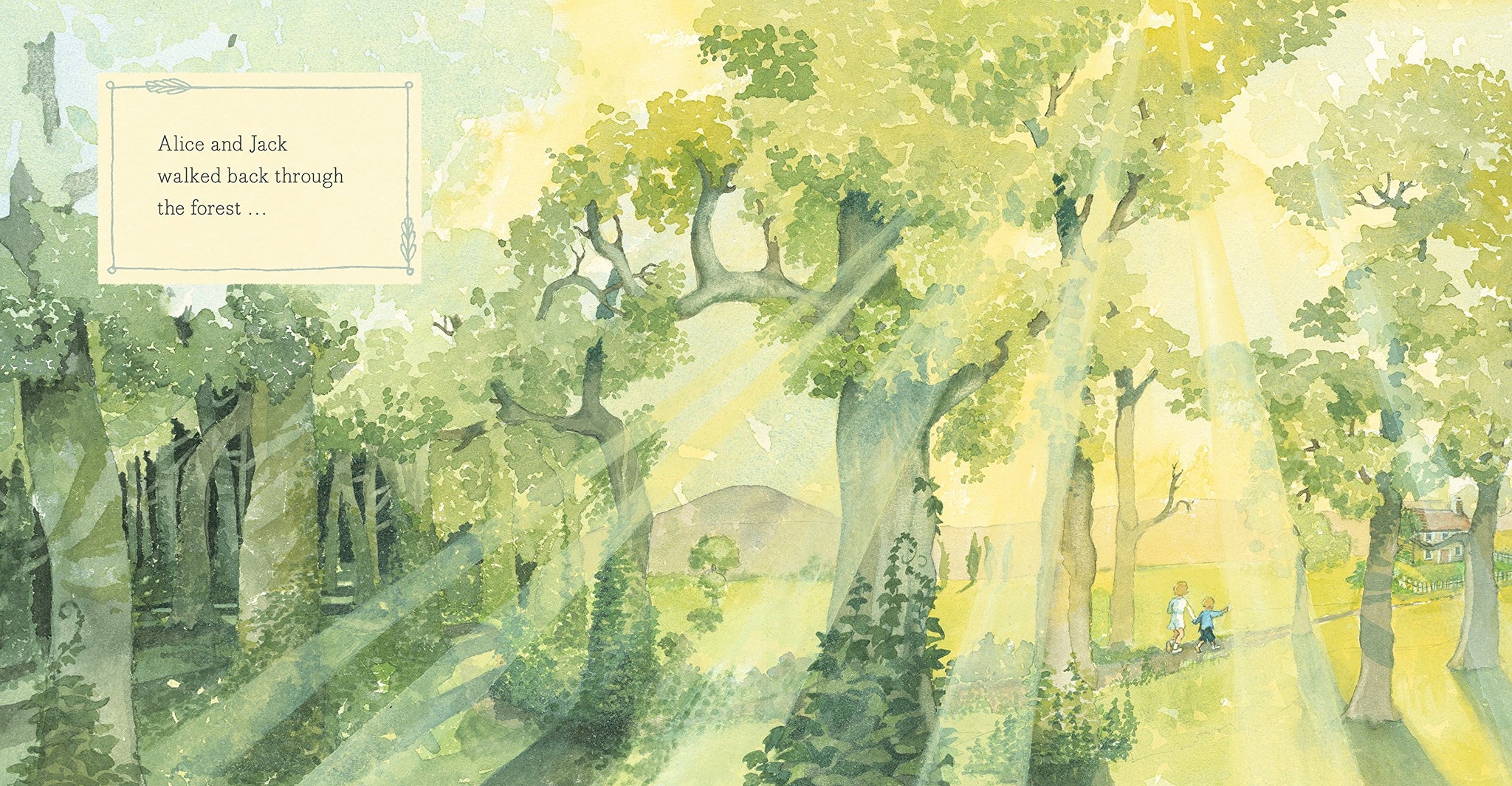 From Helen Oxenbury, the illustrator of We're Going on a Bear Hunt, and Timothy Knapman, the author of Soon, comes the story of a brother and sister, and their adventure in the woods. When Alice and Jack are out playing, they hear a strange noise. Alice wants to know what it is, but Jack is afraid. He thinks it might be the Wicked Wolf with big, bad claws and snap-trap jaws. But Alice takes his hand and they follow the noise, right into the heart of the forest... Just what will they discover there? Timothy Knapman's powerful, atmospheric narration alongside Helen Oxenbury's spectacular illustrations skilfully convey Jack's growing fear and Alice's curious excitement, all the while building toward the reveal of that mysterious sound...